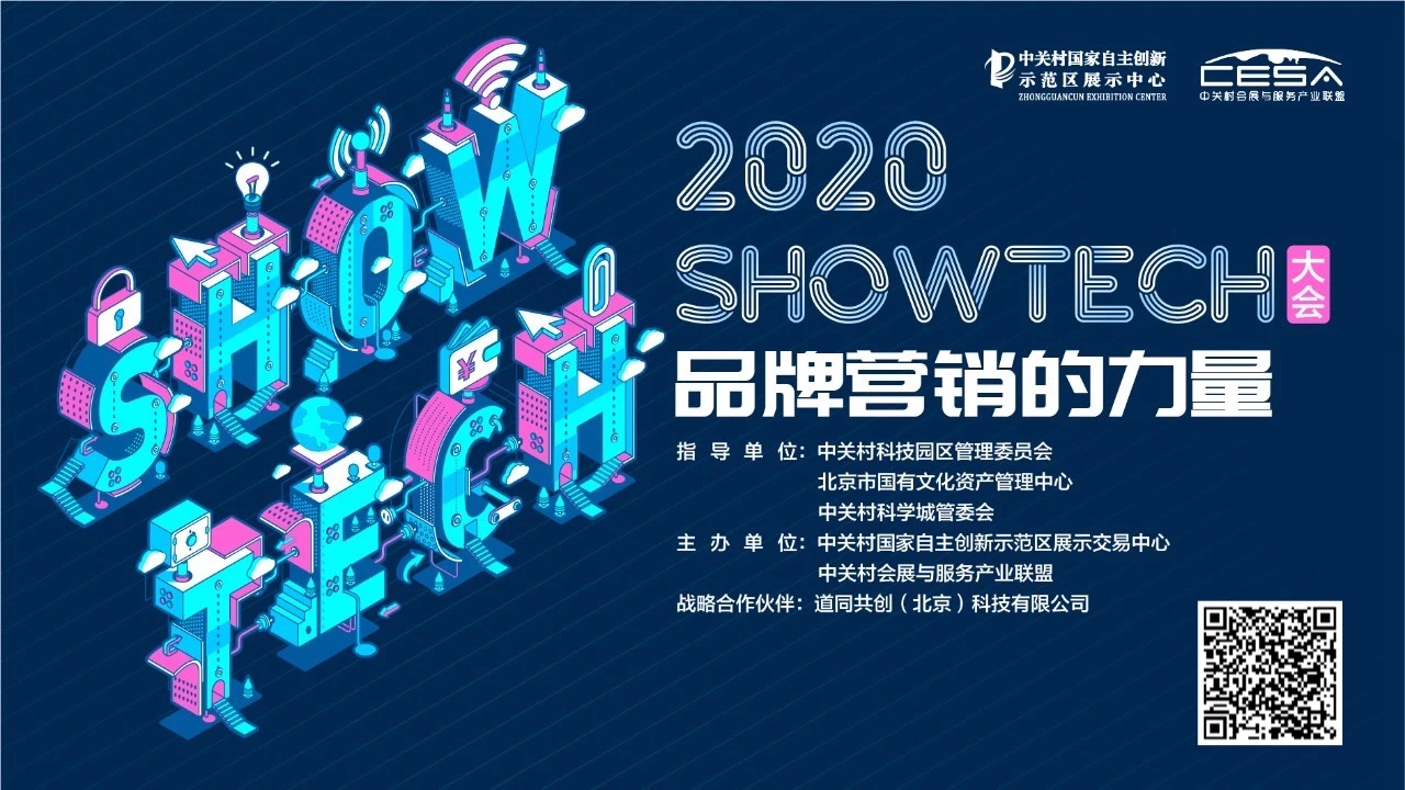 2020年12月17-18日,中关村国家自主创新示范区展示中心,由中关村国家自主创新示范区展示中心、中关村会展与服务产业联盟主办的,以“未来,每个人每个组织都会SHOW"为主题的“2020SHOWTECH”大会上,AI、数字营销、新视听、艺术创意黑科技等领域的知名企业领袖,将用他们最前沿的技术,最成功的案例,最清晰的愿景,与大家分享科技创新与产品!