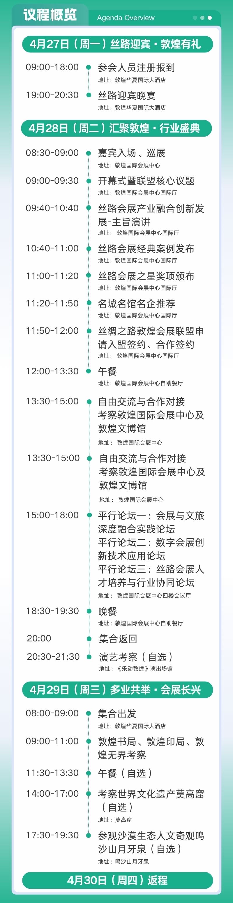本次大会既是丝路会展产业创新成果的集中展示,更是共谋发展、共拓商机的行业盛会。我们诚挚邀请贵单位领导拨冗出席,与行业同仁共探会展产业转型升级新路径,共享敦煌文化与会展资源融合新机遇,携手构建丝路会展经济共同体,为会展经济高质量发展注入新动能!